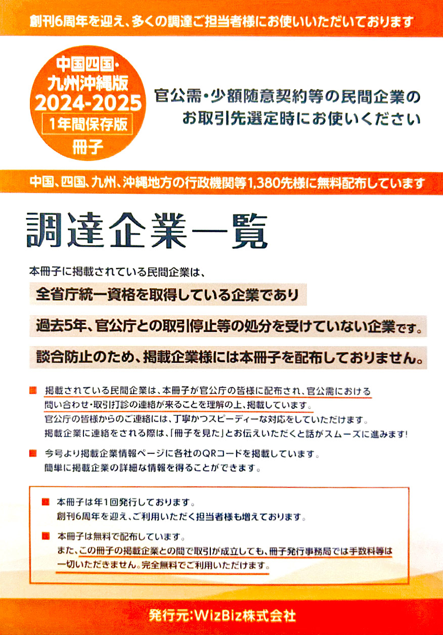 有限会社レンタル堂山は、官公庁や行政機関が安心して取引できる民間企業として、信頼の証である「調達企業一覧」に掲載されています。